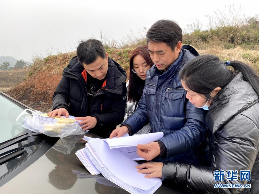 1月27日,駐麻溪口村幫扶工作隊(duì)隊(duì)長(zhǎng)段吉廣(中)在村內(nèi)協(xié)調(diào)生豬養(yǎng)殖場(chǎng)建設(shè)工作。新華社記者 柳王敏 攝