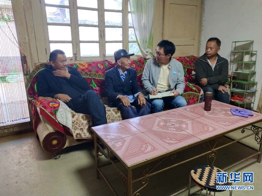 邱廷柱(右二)與村干部了解群眾家庭情況。受訪者供圖