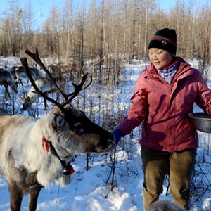 馴鹿性情溫順,耐力強(qiáng),可以負(fù)載重物穿山越嶺,有“森林之舟”的美譽(yù)。廣袤的大興安嶺森林茂盛,苔蘚遍布,為馴鹿提供了豐富食物。