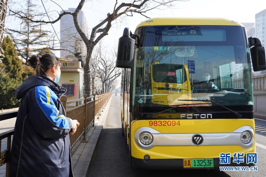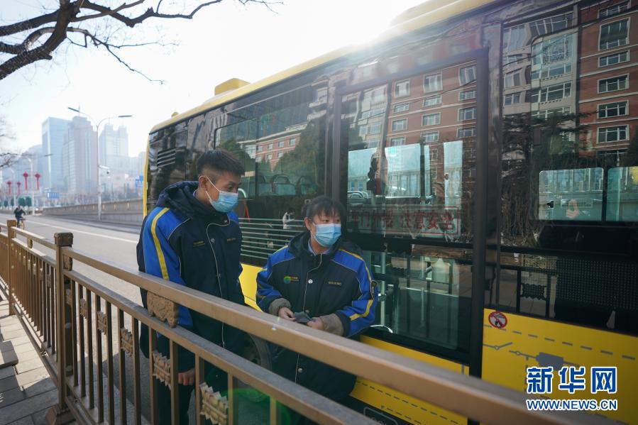 在地鐵建國(guó)門站,柴麗莉(左)在等候姜楠駕駛的公交車進(jìn)站(2月10日攝)。新華社記者 鞠煥宗 攝