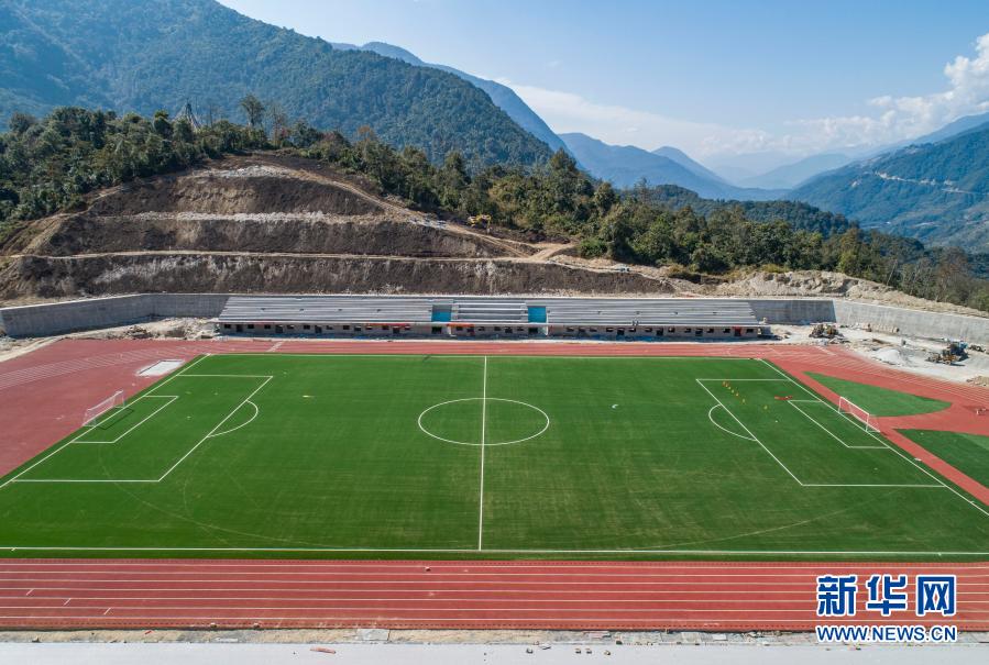 這是墨脫縣新修建的11人制足球場(chǎng)(2月13日攝,無(wú)人機(jī)照片)。新華社記者 羅博 攝