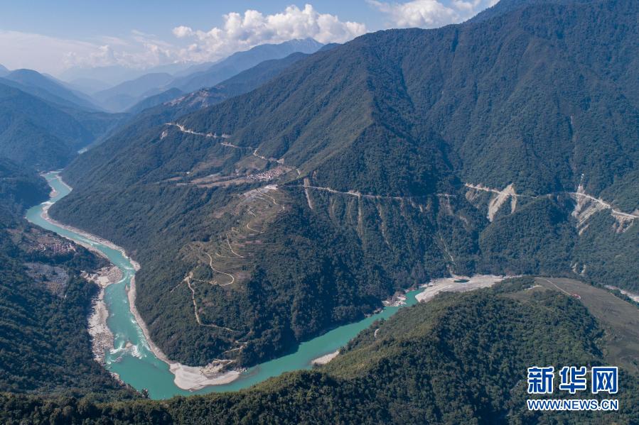 西藏林芝市墨脫縣德興鄉(xiāng)巴登則村位于雅魯藏布江邊的一座山上(2月9日攝,無(wú)人機(jī)照片)。新華社記者 孫非 攝