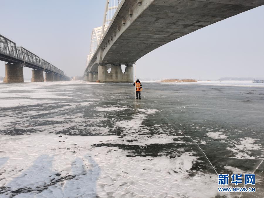 為保證這座橋梁的安全,每年春節(jié)前夕,中國(guó)鐵路哈爾濱局集團(tuán)有限公司哈爾濱工務(wù)段高鐵路橋車間的橋隧工,都要冒著零下二三十?dāng)z氏度的嚴(yán)寒,在冰封的松花江面上固定點(diǎn)位,通過(guò)鉆冰孔測(cè)量水深,掌握橋墩的穩(wěn)定性等情況。