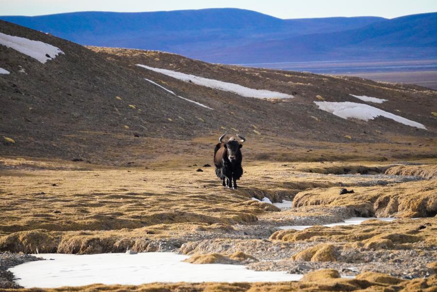 西藏羌塘國家級自然保護區(qū)內(nèi)的野牦牛(2021年1月16日攝) 新華社記者 格桑朗杰 攝