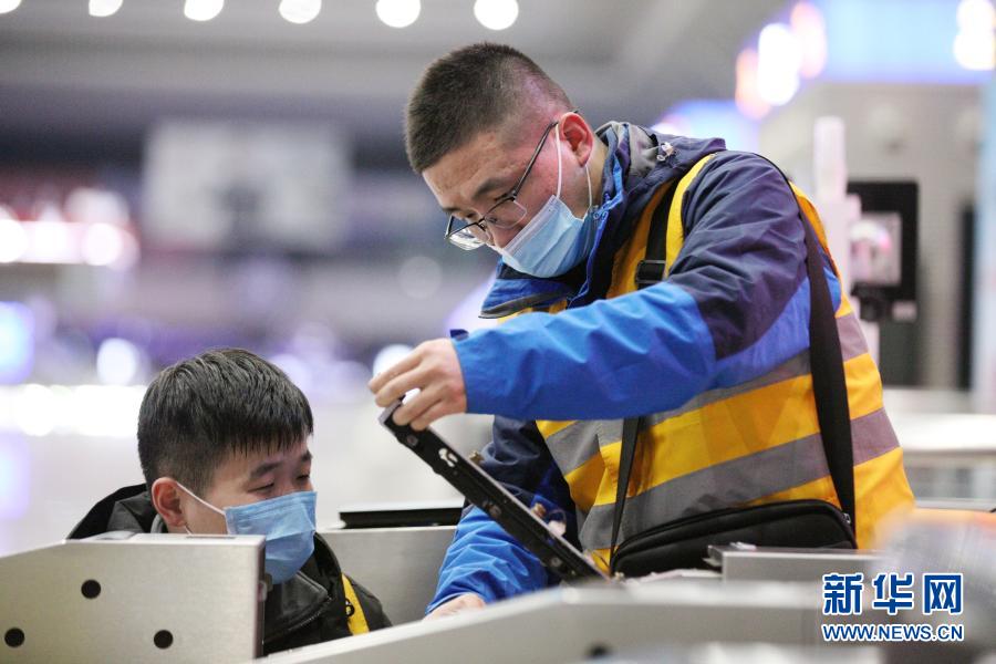 在鄭州東站,中國(guó)鐵路鄭州局集團(tuán)有限公司科學(xué)技術(shù)研究所設(shè)備維保員趙牧童(右)和同事在維護(hù)高鐵站設(shè)備(2020年12月30日攝)。新華社發(fā)