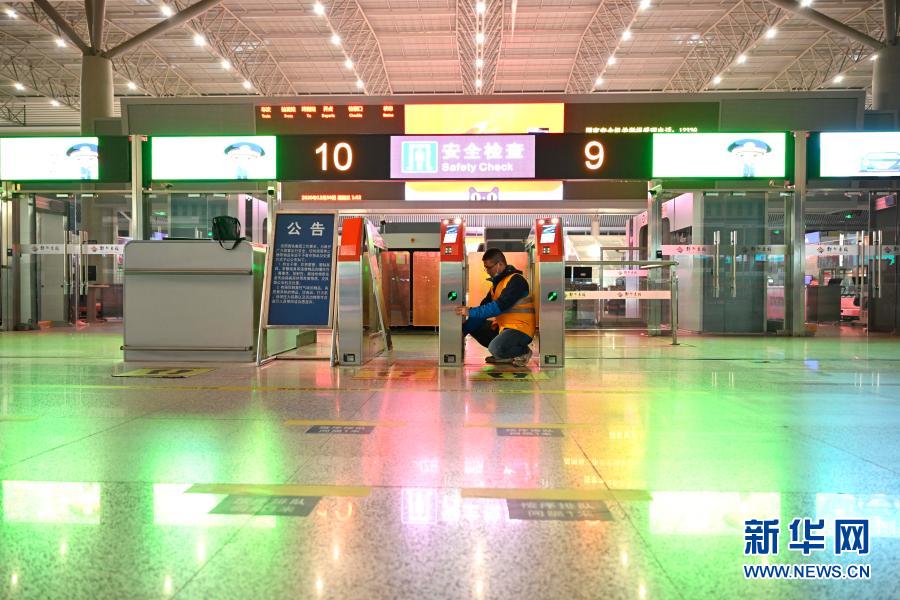 新華社鄭州2月20日電(記者劉高陽(yáng))子夜,鄭州東站。候車室的巨大時(shí)鐘已劃過(guò)零點(diǎn),白天里的熙熙攘攘的人群消失不見,只有遍布站內(nèi)的電子設(shè)備指示燈閃爍著。