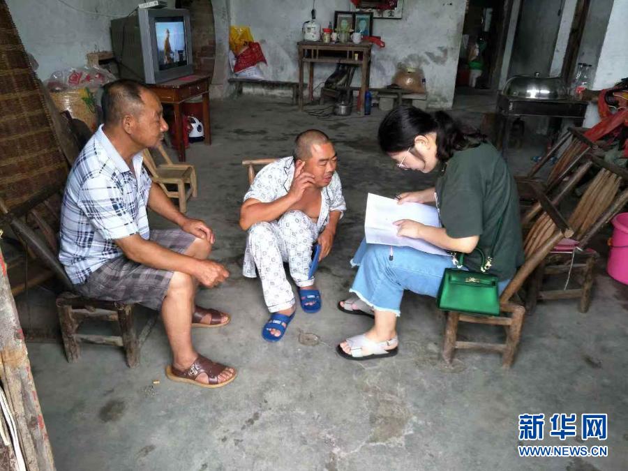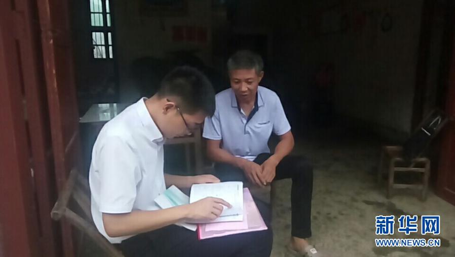 吳應(yīng)譜(左)在走訪貧困戶(hù)(資料照片)。新華社發(fā)(修水縣委宣傳部供圖)