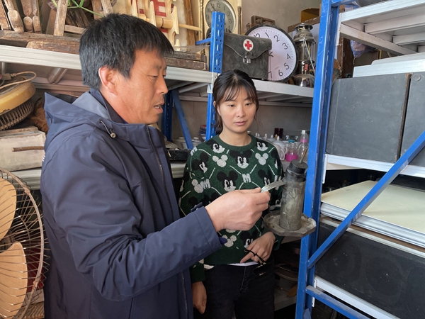 趙鴻向游客介紹劇中使用的老物件。新華社記者 馬麗娟 攝