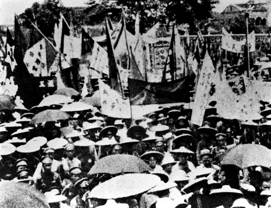 圖為北伐軍攻克武昌,武漢軍民舉行聯(lián)歡大會(huì) 新華社圖片