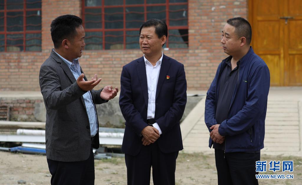 7月6日,張峰(中)在青海省海南藏族自治州共和縣恰卜恰鎮(zhèn)索吉亥村調研。新華社記者 央秀達珍 攝