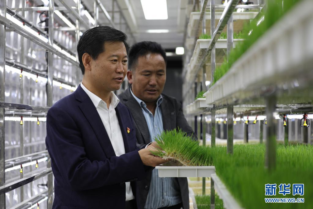 7月6日,張峰(左)在青海省海南藏族自治州恰噶畜牧業(yè)有限公司調研。新華社記者 趙玉和 攝