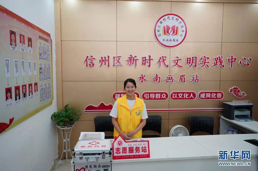江西省上饒市信州區(qū)新時(shí)代文明實(shí)踐中心水南畫眉站的工作人員在值班(7月22日攝)。新華社記者 邢廣利 攝
