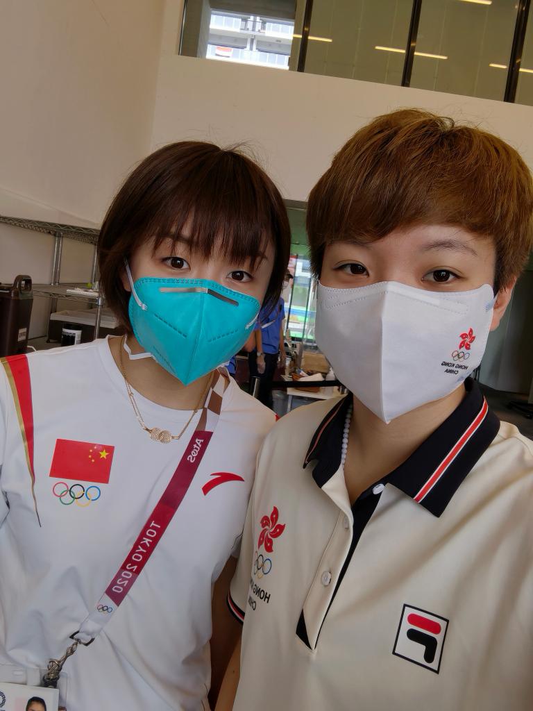 杜凱琹(右)與中國(guó)隊(duì)運(yùn)動(dòng)員陳夢(mèng)合影。受訪者供圖