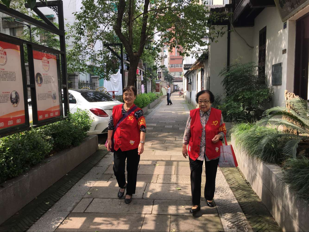 “紅巷老舅媽”志愿者在社區(qū)巡邏。(小營巷社區(qū)供圖)