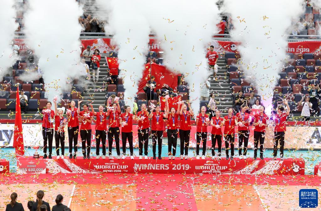 2019年9月29日,第十三屆女排世界杯頒獎(jiǎng)儀式在日本大阪舉行,中國隊(duì)在本屆比賽中以十一連勝的戰(zhàn)績奪得了冠軍。新華社記者杜瀟逸攝