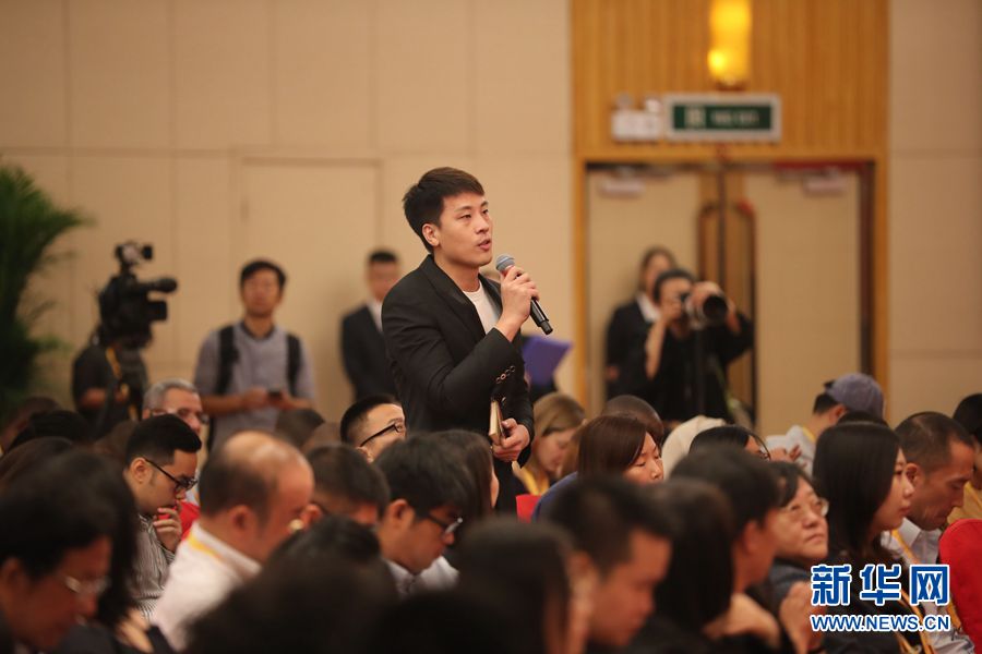 9月24日,慶祝中華人民共和國成立70周年活動新聞中心在北京梅地亞中心二層新聞發(fā)布廳舉辦第一場新聞發(fā)布會。圖為媒體記者提問。新華網(wǎng)記者 陳競超 攝
