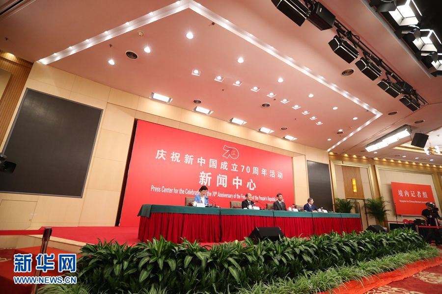 9月24日,慶祝中華人民共和國成立70周年活動新聞中心在北京梅地亞中心二層新聞發(fā)布廳舉辦第一場新聞發(fā)布會。圖為新聞發(fā)布會現場。新華網記者 陳競超 攝