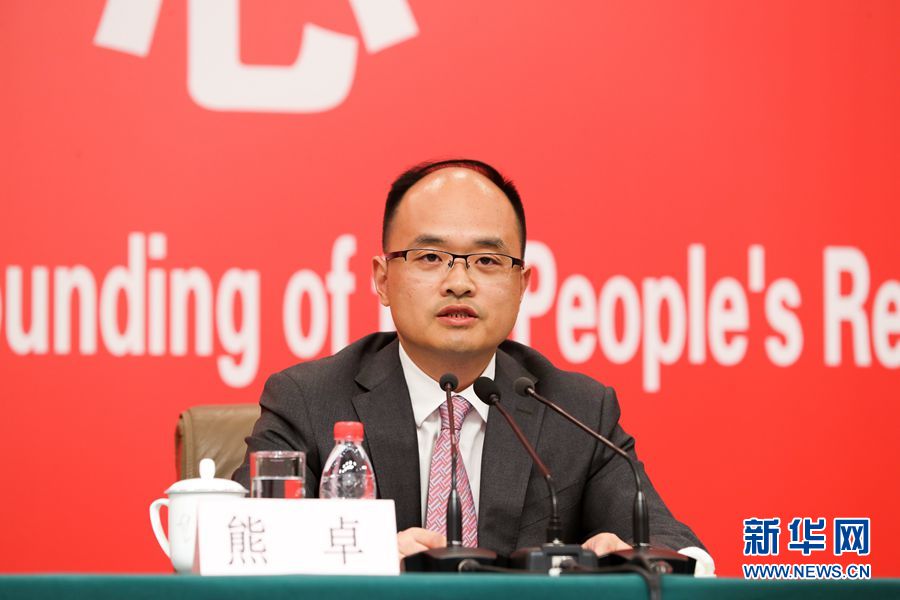 9月25日,慶祝中華人民共和國(guó)成立70周年活動(dòng)新聞中心在北京梅地亞中心二層新聞發(fā)布廳舉辦第二場(chǎng)專(zhuān)題集體采訪活動(dòng)。圖為志愿者指揮部執(zhí)行指揮熊卓介紹相關(guān)情況。新華網(wǎng)記者 焦鵬 攝