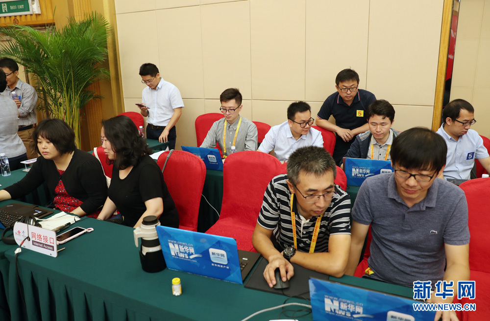 9月27日,慶祝中華人民共和國成立70周年活動(dòng)新聞中心在梅地亞中心二層新聞發(fā)布廳舉辦第三場(chǎng)新聞發(fā)布會(huì),中央農(nóng)村工作領(lǐng)導(dǎo)小組辦公室主任、農(nóng)業(yè)農(nóng)村部部長韓長賦,國務(wù)院扶貧開發(fā)領(lǐng)導(dǎo)小組辦公室主任劉永富介紹全面建成小康社會(huì),扎實(shí)推進(jìn)脫貧攻堅(jiān)和鄉(xiāng)村振興,并回答記者提問。圖為新華網(wǎng)對(duì)發(fā)布會(huì)進(jìn)行現(xiàn)場(chǎng)直播。新華網(wǎng) 陳杰 攝