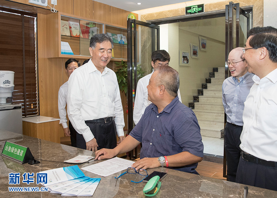 6月6日至7日,中共中央政治局常委、全國(guó)政協(xié)主席汪洋在廈門(mén)出席第十屆海峽論壇期間,就兩岸經(jīng)濟(jì)文化交流合作情況進(jìn)行調(diào)研。這是6月7日,汪洋在廈門(mén)市湖里區(qū)殿前街道興隆社區(qū)便民服務(wù)大廳了解臺(tái)胞在閩生活工作情況。新華社記者 王曄 攝