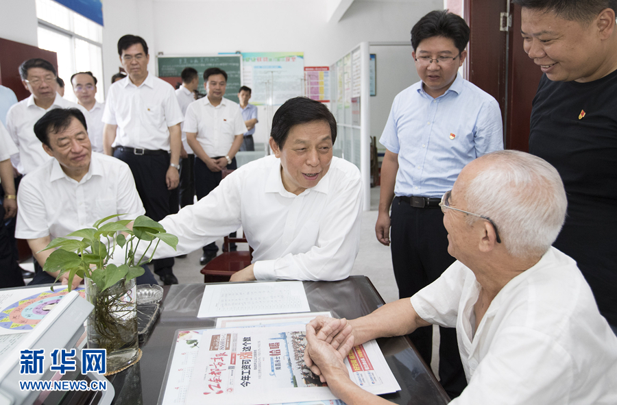7月19日至23日,中共中央政治局常委、全國(guó)人大常委會(huì)委員長(zhǎng)栗戰(zhàn)書(shū)在江西調(diào)研。這是7月20日,栗戰(zhàn)書(shū)專(zhuān)程來(lái)到瑞金市葉坪鄉(xiāng)仰山村,在村醫(yī)務(wù)室詢(xún)問(wèn)村民看病等情況。 新華社記者黃敬文 攝