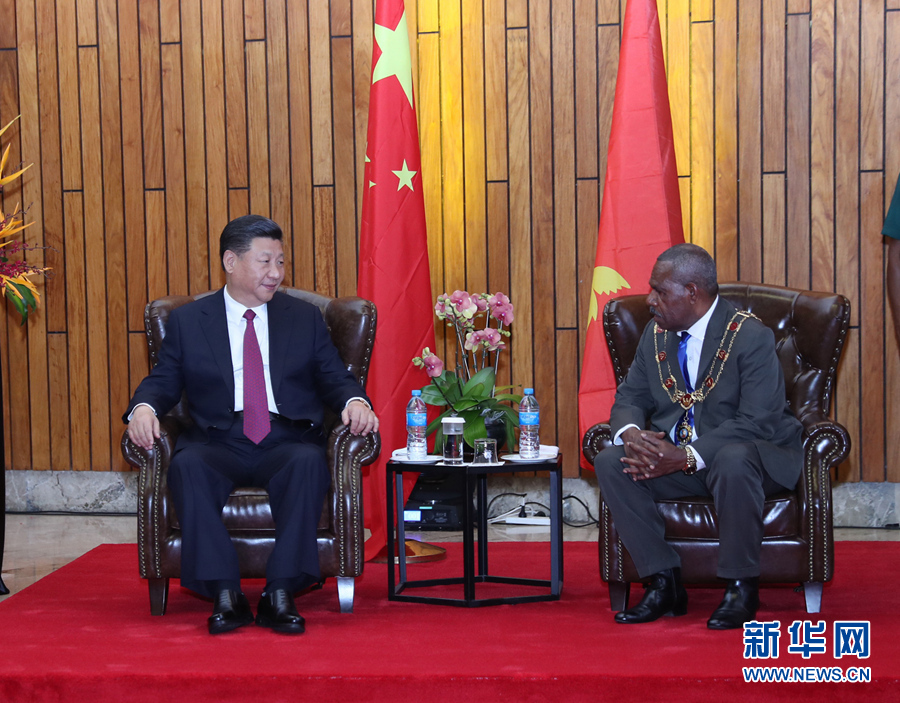 11月16日,國家主席習(xí)近平在莫爾茲比港會(huì)見巴布亞新幾內(nèi)亞總督達(dá)達(dá)埃。新華社記者 鞠鵬 攝