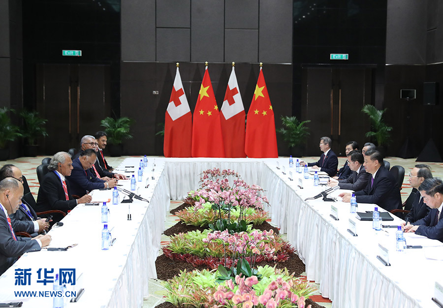 11月16日,國家主席習(xí)近平在莫爾茲比港分別會(huì)見建交太平洋島國領(lǐng)導(dǎo)人。這是習(xí)近平會(huì)見湯加首相波希瓦。 新華社記者 丁林 攝
