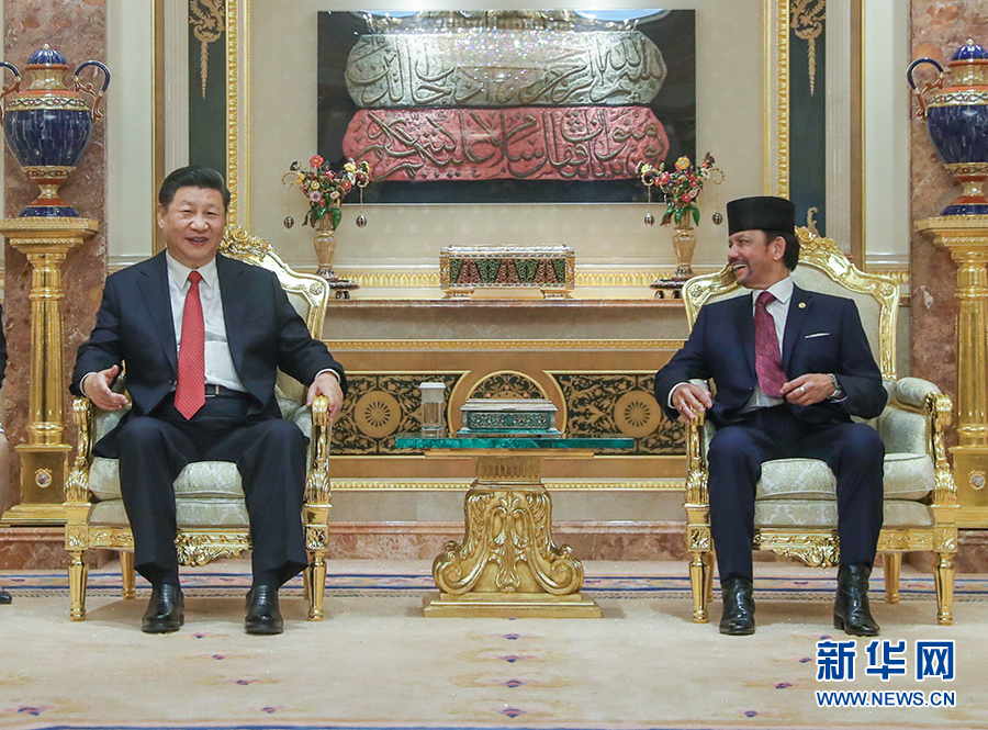 新華社斯里巴加灣市11月19日電(記者霍小光 李建敏 魏建華)國家主席習(xí)近平19日在斯里巴加灣同文萊蘇丹哈桑納爾舉行會談。兩國元首高度評價中文關(guān)系積極發(fā)展勢頭,一致決定建立中文戰(zhàn)略合作伙伴關(guān)系,做政治互信、經(jīng)濟互利、人文互通、多邊互助的好伙伴。