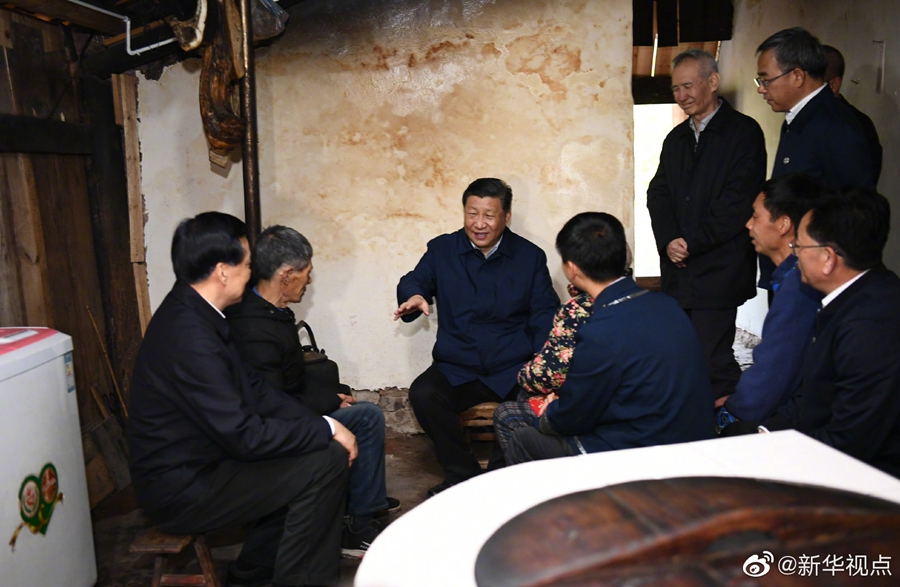15日下午,正在重慶市調(diào)研的習(xí)近平總書記來到石柱土家族自治縣中益鄉(xiāng)華溪村貧困戶譚登周家。譚登周老兩口去年因病因傷返貧,在幫扶政策下逐步擺脫貧困,基本生活有保障??倳浲麄円黄鹚闫鹆耸杖胭~和醫(yī)療賬:“低保補(bǔ)助有多少?”“土地流轉(zhuǎn)一年收入多少?”“醫(yī)藥費花了多少?報銷了多少?”“子女一年給的贍養(yǎng)費有多少?”習(xí)近平問得十分仔細(xì)。他說,你們家不愁吃、不愁穿這“兩不愁”我們直接看到了,醫(yī)療保障、住房安全做得也挺好。黨的政策對老百姓好,才是真正的好。(文字:張曉松 攝影:王曄、謝環(huán)馳、劉彬)