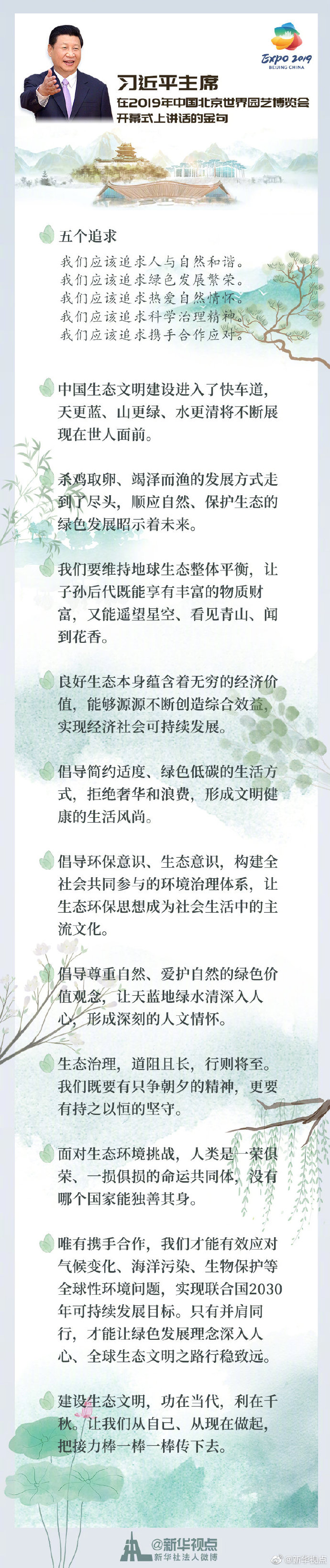習(xí)近平在2019年中國北京世界園藝博覽會(huì)開幕式上講話的金句