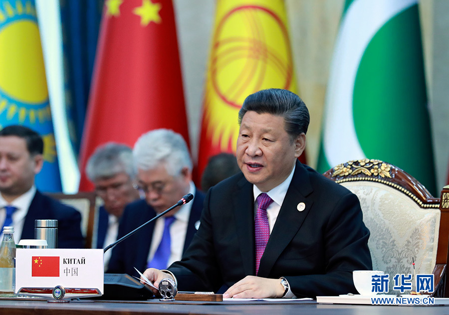 習近平在會上發(fā)表題為《凝心聚力 務實篤行 共創(chuàng)上海合作組織美好明天》的重要講話。