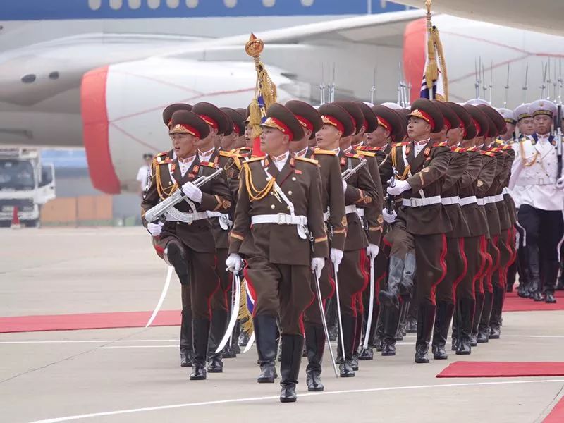 朝方在機(jī)場舉行隆重歡迎儀式。