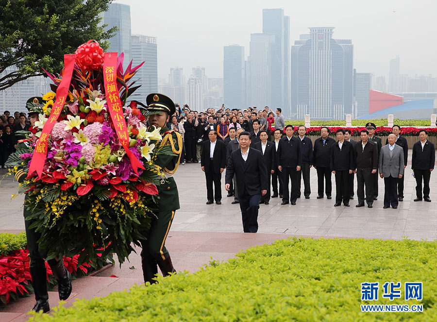 2012年12月8日,習(xí)近平在深圳蓮花山公園向鄧小平銅像敬獻花籃。新華社記者 蘭紅光 攝