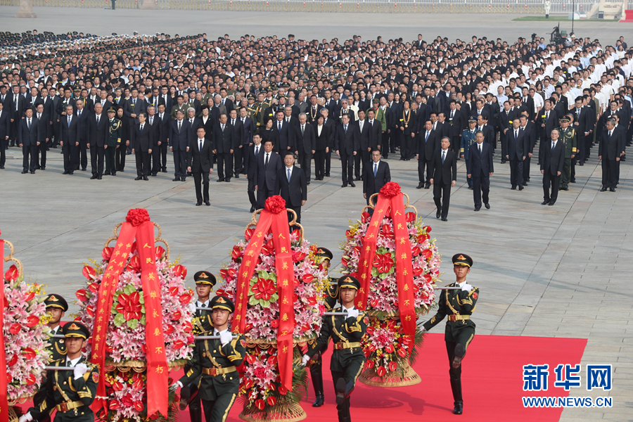 9月30日上午,習(xí)近平、李克強(qiáng)、栗戰(zhàn)書(shū)、汪洋、王滬寧、趙樂(lè)際、韓正、王岐山等黨和國(guó)家領(lǐng)導(dǎo)人來(lái)到北京天安門(mén)廣場(chǎng),出席烈士紀(jì)念日向人民英雄敬獻(xiàn)花籃儀式。 新華社記者 姚大偉 攝