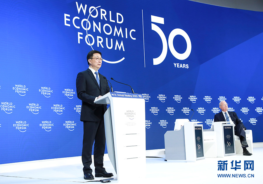 當?shù)貢r間1月21日,中共中央政治局常委、國務(wù)院副總理韓正出席達沃斯世界經(jīng)濟論壇2020年年會,發(fā)表題為“共建開放型世界經(jīng)濟 推動全球可持續(xù)發(fā)展”的致辭。 新華社記者 龐興雷 攝