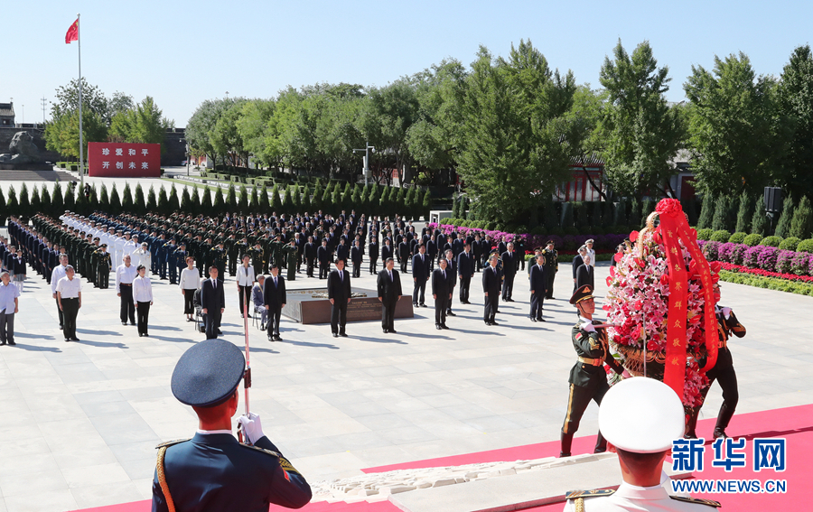 9月3日上午,習近平、李克強、栗戰(zhàn)書、汪洋、王滬寧、趙樂際、韓正、王岐山等黨和國家領導人來到中國人民抗日戰(zhàn)爭紀念館,出席紀念中國人民抗日戰(zhàn)爭暨世界反法西斯戰(zhàn)爭勝利75周年向抗戰(zhàn)烈士敬獻花籃儀式。 新華社記者 丁林 攝