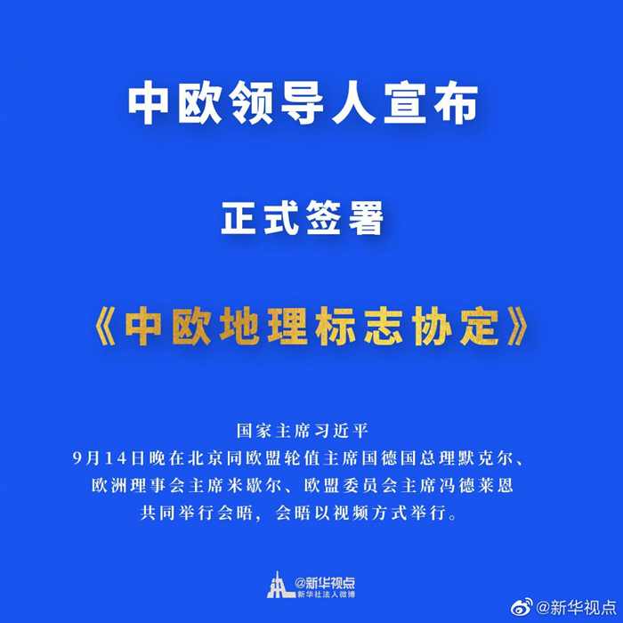 中歐領(lǐng)導(dǎo)人宣布正式簽署《中歐地理標志協(xié)定》。 ????