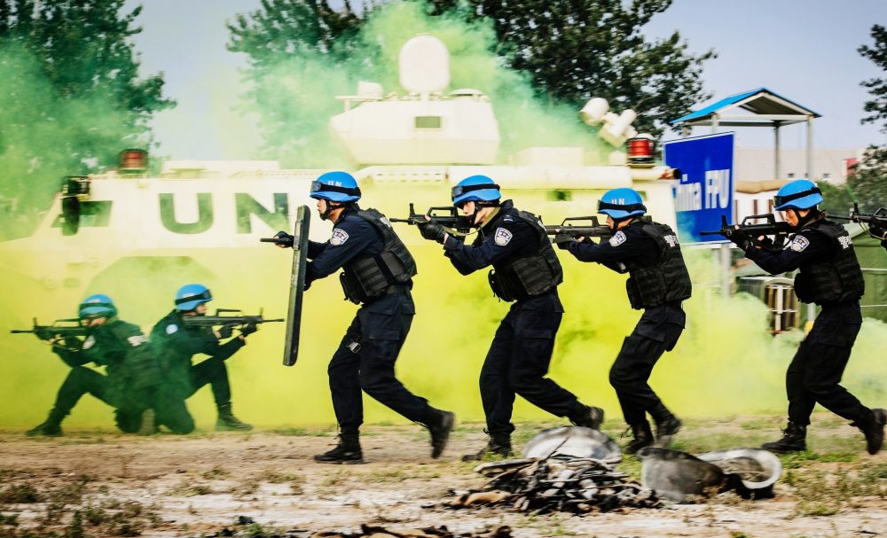 公安部常備維和警隊第二期培訓班全員通過聯(lián)合國甄選評估。新華社記者 王曉 攝