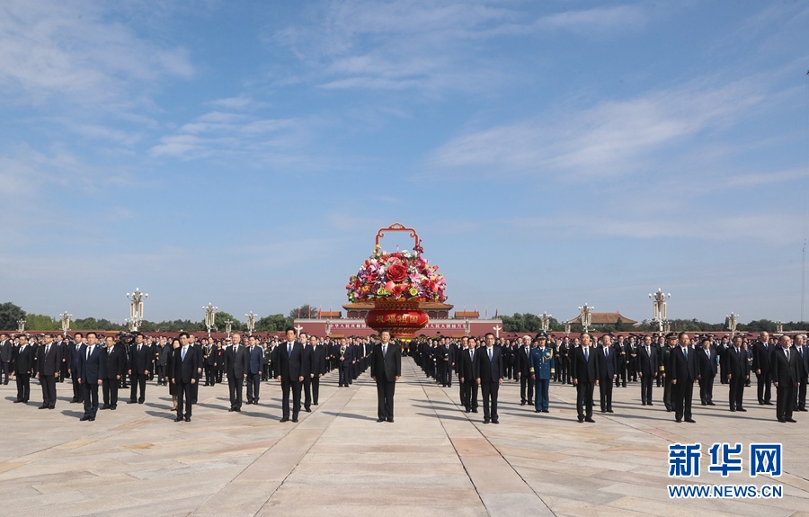 9月30日上午,黨和國(guó)家領(lǐng)導(dǎo)人習(xí)近平、李克強(qiáng)、栗戰(zhàn)書、汪洋、王滬寧、趙樂際、韓正、王岐山等來到北京天安門廣場(chǎng),出席烈士紀(jì)念日向人民英雄敬獻(xiàn)花籃儀式。 新華社記者 王曄 攝