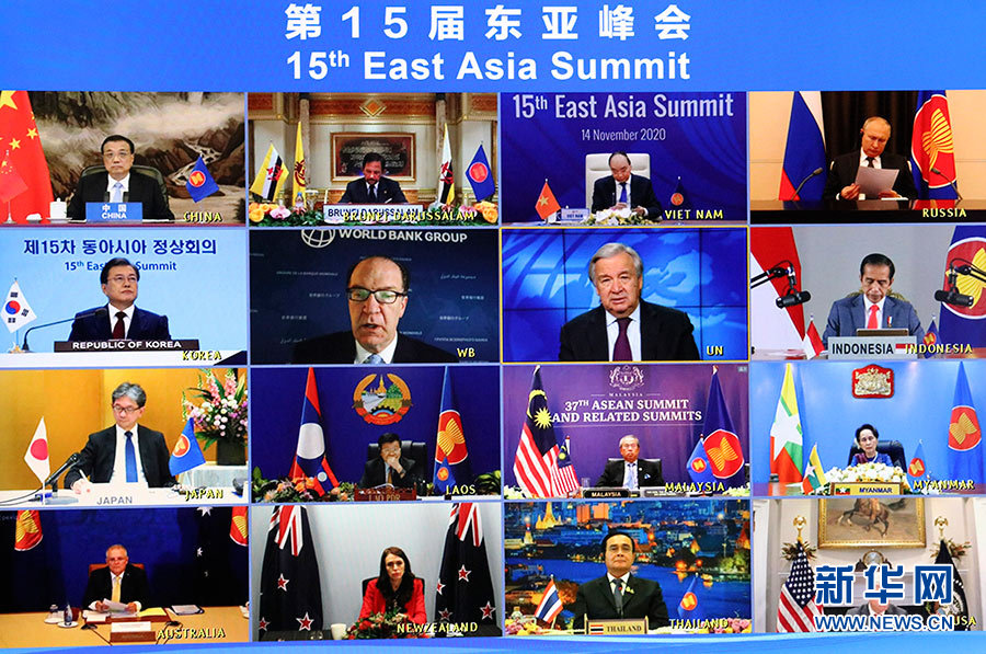 11月14日晚,國務院總理李克強在北京人民大會堂出席第15屆東亞峰會。會議以視頻形式舉行。 新華社記者 劉衛(wèi)兵 攝