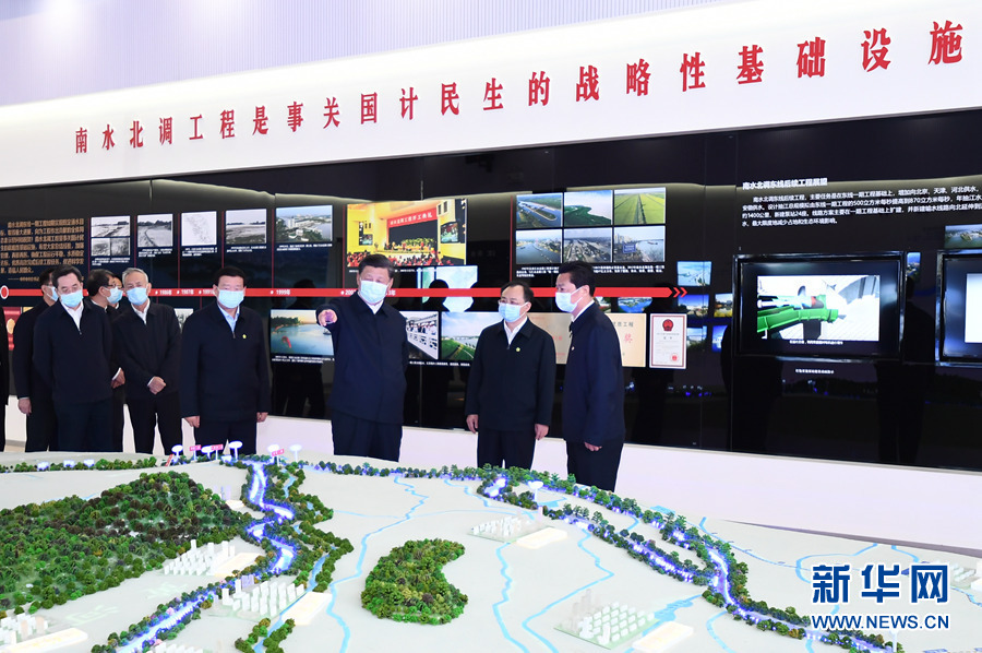一個大型沙盤模型直觀地呈現(xiàn)了中國大地上水資源大范圍大規(guī)??鐓^(qū)域調(diào)配的壯闊景象,習(xí)近平總書記駐足凝望——