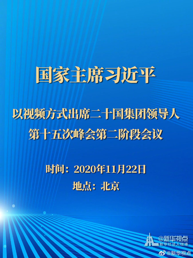 習近平以視頻方式出席二十國集團領(lǐng)導人第十五次峰會第二階段會議