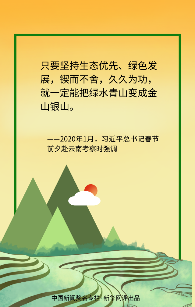 綠色發(fā)展道阻且長,但行則將至。生態(tài)治理、實現(xiàn)人與自然和諧共生仍有不少“硬骨頭”要啃。我們既要有除弊治病的決心,又要有遵循規(guī)律辦事的自覺,既要有只爭朝夕的精神,更要有持之以恒的堅守,以綿綿之力久久為功,腳踏實地地推進(jìn)美麗中國建設(shè),一處處“詩意棲居”的綠水青山必將變成一座座金山銀山。(文字:徐可 海報:滕華)