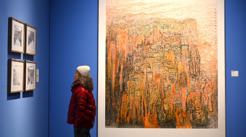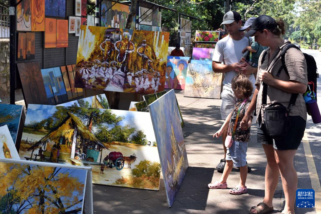 1月8日,人们在斯里兰卡科伦坡市中心“绿径”街头艺术画廊前欣赏画作。