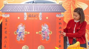 1月21日,参观者在“万古长歌——湖南史前文明图卷展”上观看图卷。