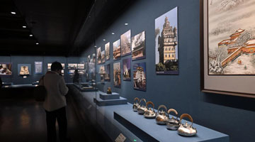 1月21日,参观者在“万古长歌——湖南史前文明图卷展”上观看陶器。