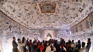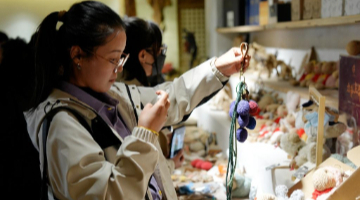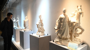 4月8日,游客在舟山市朱家尖南沙景区观看音乐主题沙雕作品。