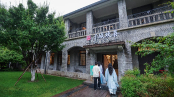 6月20日,参观者在呼和浩特职业学院美术馆观赏剪纸作品。