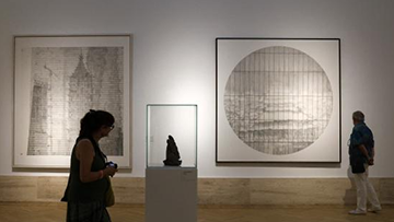 这是8月2日拍摄的银川当代美术馆十周年特展开幕式。