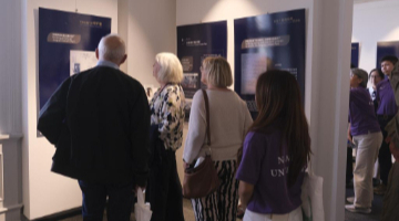 8月22日,在瑞士伯尔尼中国文化中心,嘉宾在 “安善萃锦——中式生活美学展”开幕式上聆听讲解。